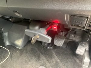 お客様はハイエースの盗難対策として『ブレーキペダルロック』を装着されていました。ブレーキレバーを物理的に固定 強固にロックします。