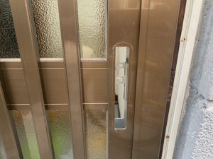 本日は、玄関引き戸の端の鍵が調子悪く一度見て欲しいとご連絡いただき出動しました。