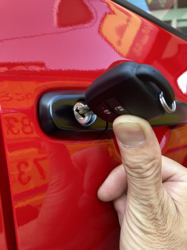 まず鍵足をカットし、ドアシリンダーとイグニッションシリンダーで鍵が回るか確認します。