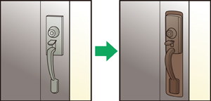 - 現在使用しているサムラッチ錠の扉の切欠が隠れるエスカチオンを使用して、バックセット60ミリで他社製品からの交換が可能です。